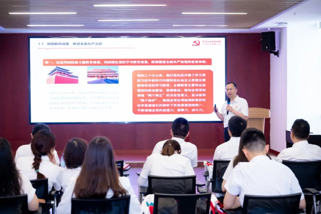随后,特锐德川开电气党委书记、副董事长邢志刚为公司党员代表们带来了《以优良作风助推高质量发展》为题的党课,引导党员代表们深入学习了中央八项规定精神、中国共产党纪律处分条例及特锐德集团红线文化。