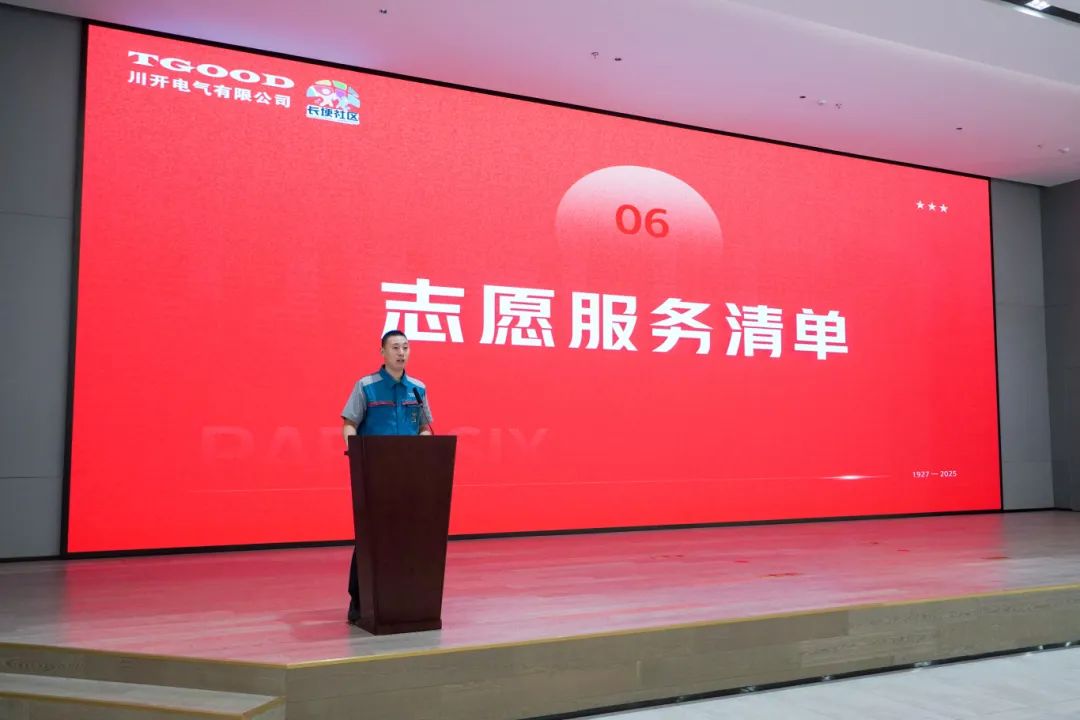 活动伊始,全体与会人员奏唱《义勇军进行曲》《中国人民解放军进行曲》并观看了特锐德川开电气45周年宣传片《电光流年:1980-2025》。特锐德川开电气党委书记、副董事长邢志刚致辞表示,特锐德川开电气始终以“产业报国”为己任,从改革开放初期的小作坊成长为如今的国家级高新技术企业,离不开国家的稳定发展,离不开军民融合的深厚土壤。他指出,作为特锐德川开电气和社区发展的“生力军”,企业中的退役军人战友将“特别能吃苦、特别能战斗”的军人本色融入企业血脉,让军人精神在企业发展中代代相传。特锐德川开电气将以此次活动为契机,深化与长埂社区的党建联建,推动退役军人志愿服务与企业生产经营、社区治理深度融合,让“红色基因”成为驱动高质量发展的“红色引擎”。