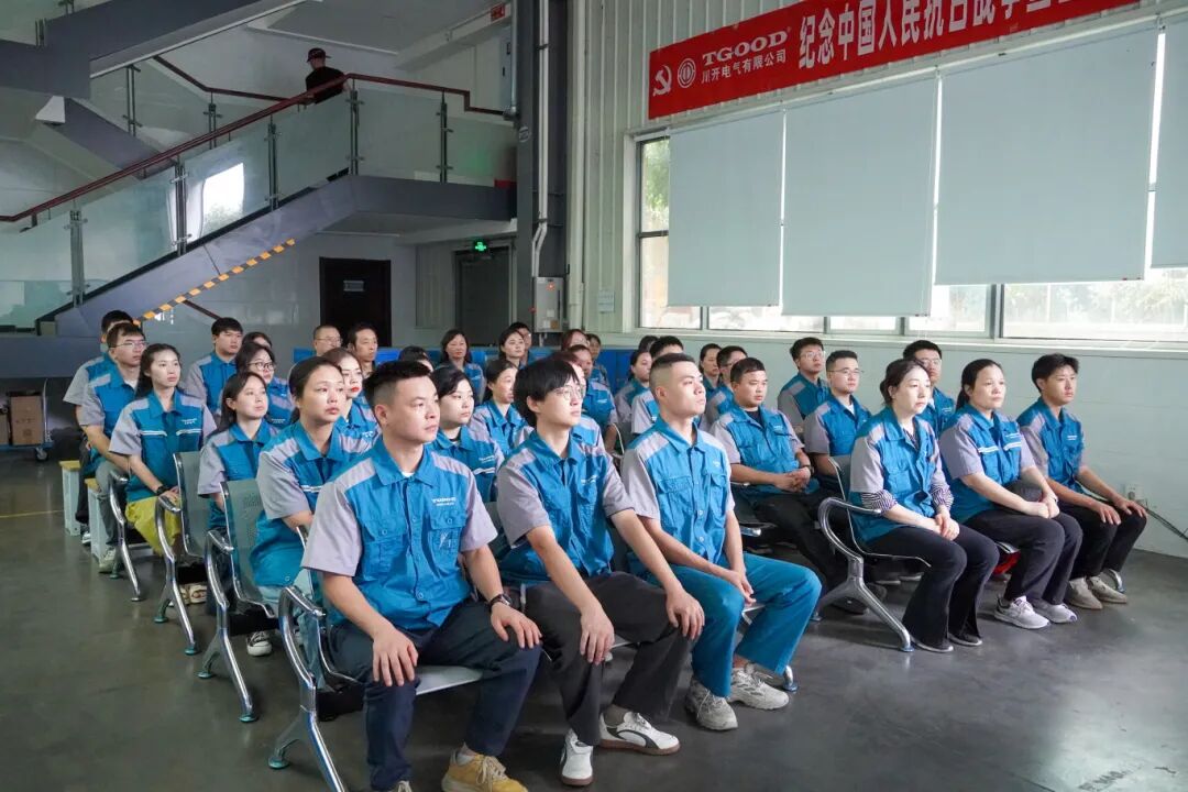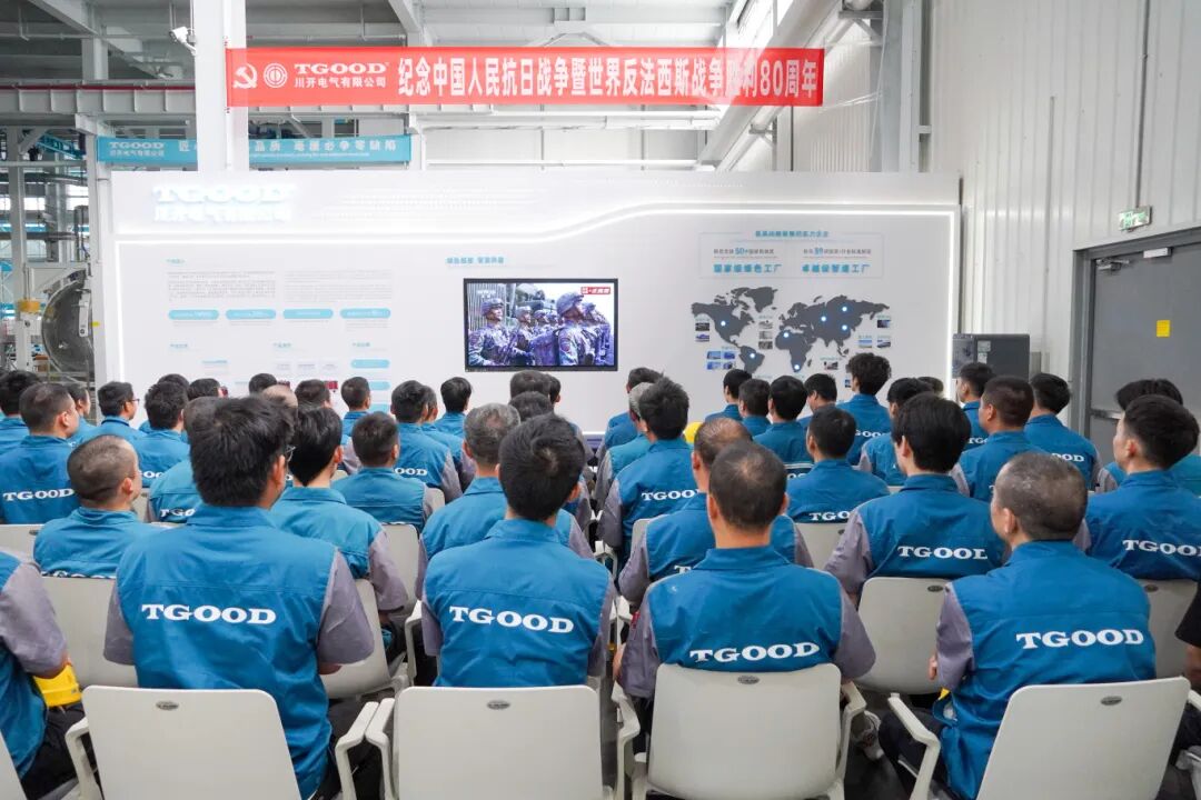 9月3日,中国人民抗日战争暨世界反法西斯战争胜利80周年阅兵仪式在北京隆重举行。为深入贯彻落实爱国主义精神教育,弘扬伟大抗战精神,增强民族凝聚力,中共川开电气有限公司委员会组织公司全体党员及入党积极分子、高中层管理人员、九三学社四川省直工委川开电气支社成员及广大职工集中收看了阅兵仪式直播。