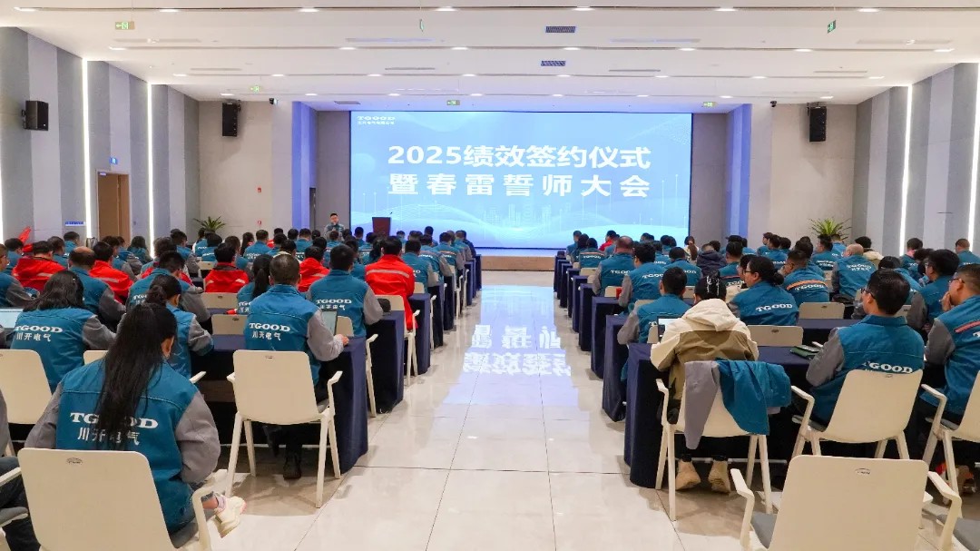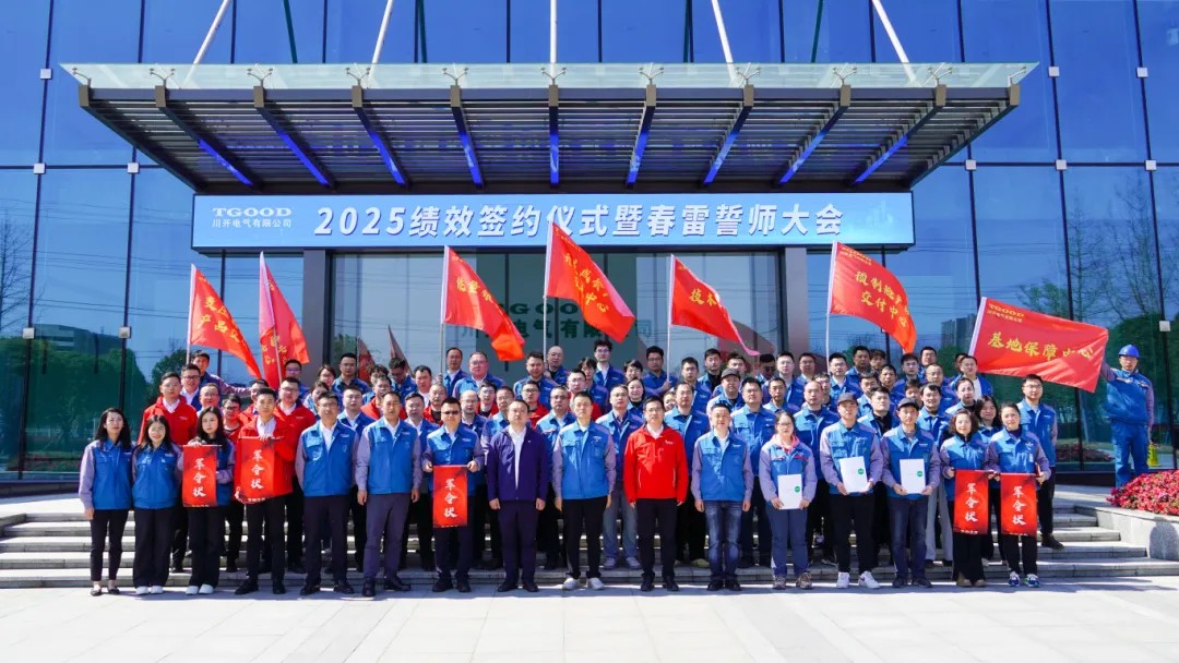 3月24日,特锐德川开电气成功举办2025年绩效签约仪式暨春雷行动誓师大会。特锐德川开电气总经理杨杰、常务副总经理姬广辉参加会议并致辞。