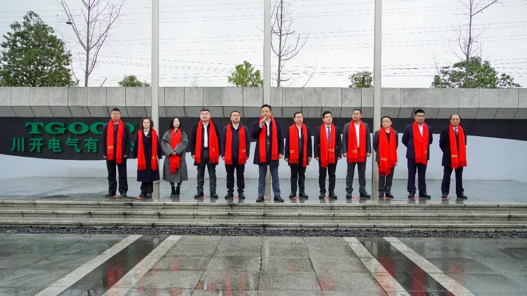 上午八点八分,开工仪式准时启动,特锐德川开电气全体员工以饱满的精神状态回到工作岗位,齐聚公司广场。在正月的喜庆氛围中,礼炮齐鸣,烟花绚烂,寓意着新的一年红红火火、蒸蒸日上,打响了特锐德川开电气新征程的“发令枪”。随后,五星红旗伴随着雄壮激昂的国歌冉冉升起,司旗承载着公司的荣耀和使命随风飘扬,全体人员肃穆而立、行注目礼,以崭新的姿态、昂扬的斗志,满怀憧憬地拉开了新一年的发展序幕。