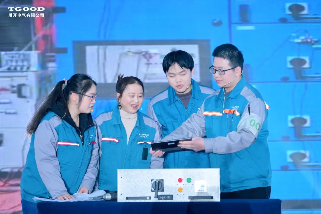 承上启下的年会第二篇章由《家·业》宣传片启幕,展现了公司大家庭的温暖与和谐。多个部门联合演出的《电气品质 抗震担当》小品节目,用幽默诙谐的方式,讲述了川开电气核级成套开关柜通过抗震试验的故事,充分展现出川开电气为客户提供精致产品与优质服务的决心与担当。一曲《我们都是追梦人》以动人的歌声伴随战友们活力满满的舞蹈,不仅展现了川开电气人昂扬奋进的风采,也表达了大家对追梦征程的美好憧憬和殷切期望。