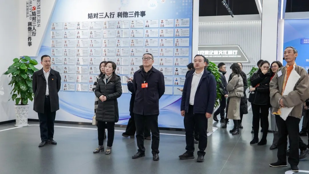 调研组步入特锐德川开电气的党建文化展厅,在参观过程中听取了两新组织党建引领、党业融合高新技术生产发展情况介绍,充分了解了特锐德川开电气坚持“党建强、发展强”,把党建和企业文化、发展目标、价值理念等企业管理理念充分融合,形成独特的“生态党建”体系,以党建赋能企业快速健康发展。