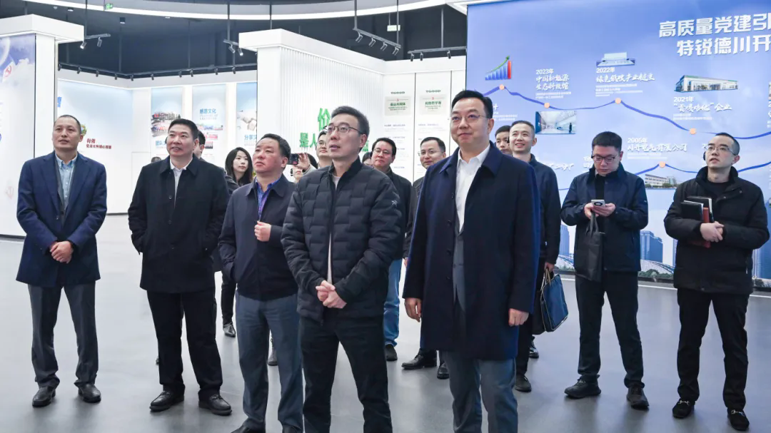 在特锐德川开电气生态党建展厅内,来访领导们进一步了解了特锐德川开电气的发展历程,并通过企业文化、“特色三会”等内容对特锐德川开电气的生态党建理念产生了更加全面而深入的认识。