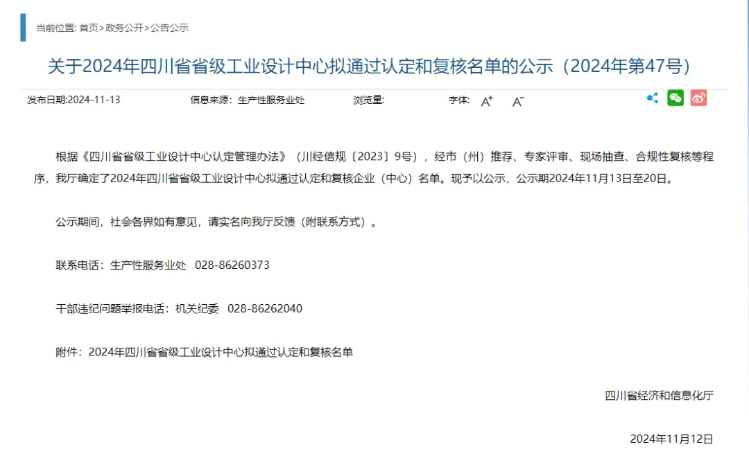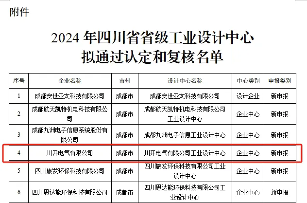 近日,四川省经济和信息化厅公示了2024年四川省省级工业设计中心拟通过认定和复核企业(中心)名单,特锐德川开电气凭借在工业设计领域的杰出表现和创新能力成功通过了认定。
