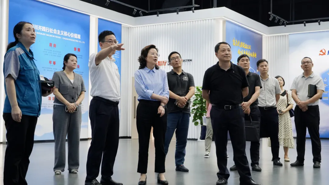 在公司领导的讲解及陪同下,调研组走进特锐德川开电气的党建文化展厅,在参观过程中充分了解了特锐德川开电气的特色生态党建理念及企业文化,对特锐德川开电气坚持党建引领、党业融合产生了更加全面而深入的认识。