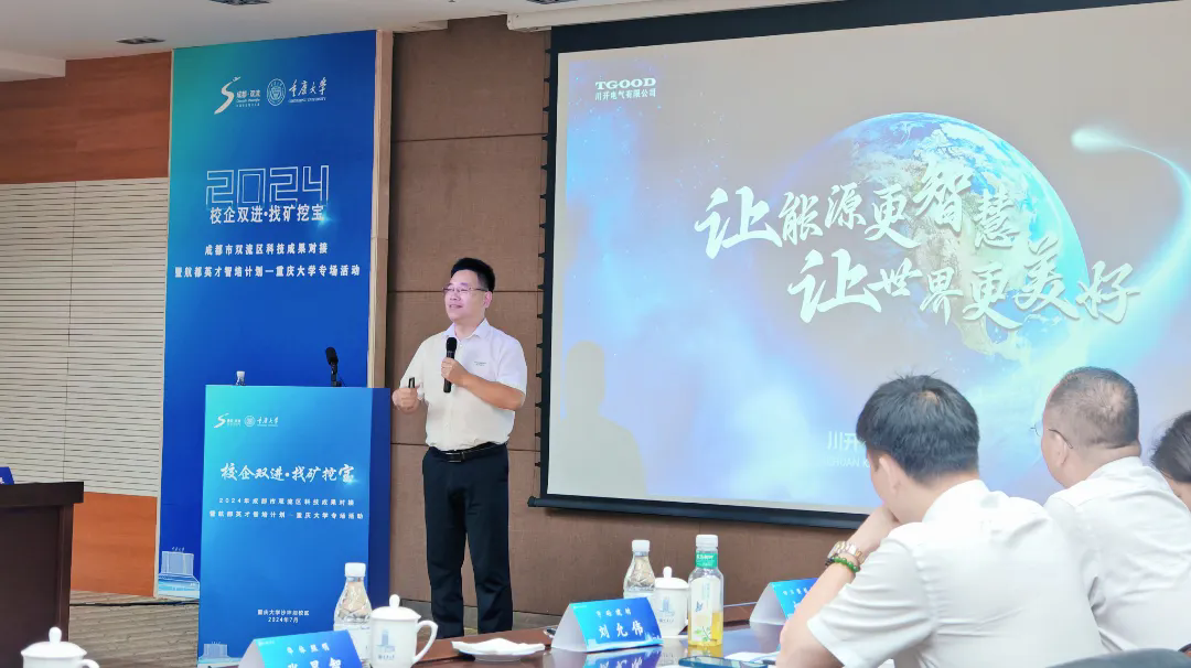 在“企业技术需求发布+专家揭榜交流”环节,来自双流区的4家重点企业发布了15条技术需求,来自重庆大学不同领域的7个专家团队与双流区企业就技术创新需求进行了深入交流和探讨。其中,特锐德川开电气常务副总经理姬广辉向与会人员们介绍了公司的基本信息与业务发展情况,发布了特锐德川开电气的技术开发需求,并与重庆大学电气工程学院的专家团队达成了初步合作意向。