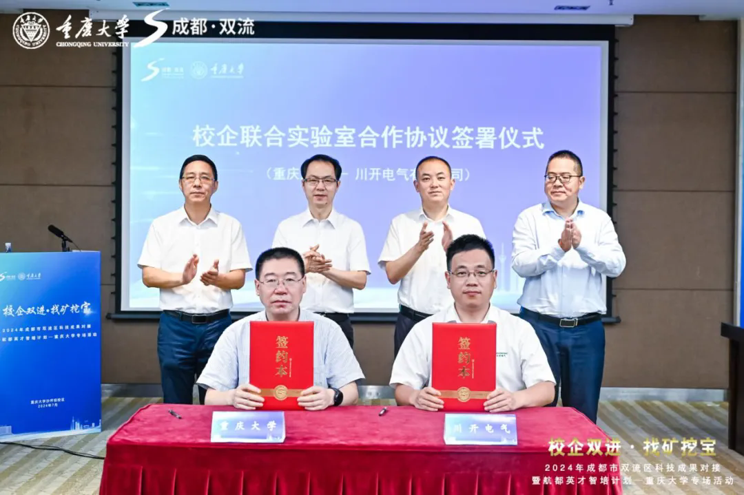活动现场,特锐德川开电气与重庆大学签署了共建“智能输配电装备联合实验室”合作协议。该项校企合作协议的签订将助力重庆大学学科建设和科研成果转化,进一步提升特锐德川开电气的科技创新和竞争实力,同时也标志着校企双方在推动成果转化、共同引育创新人才等领域正式展开合作。