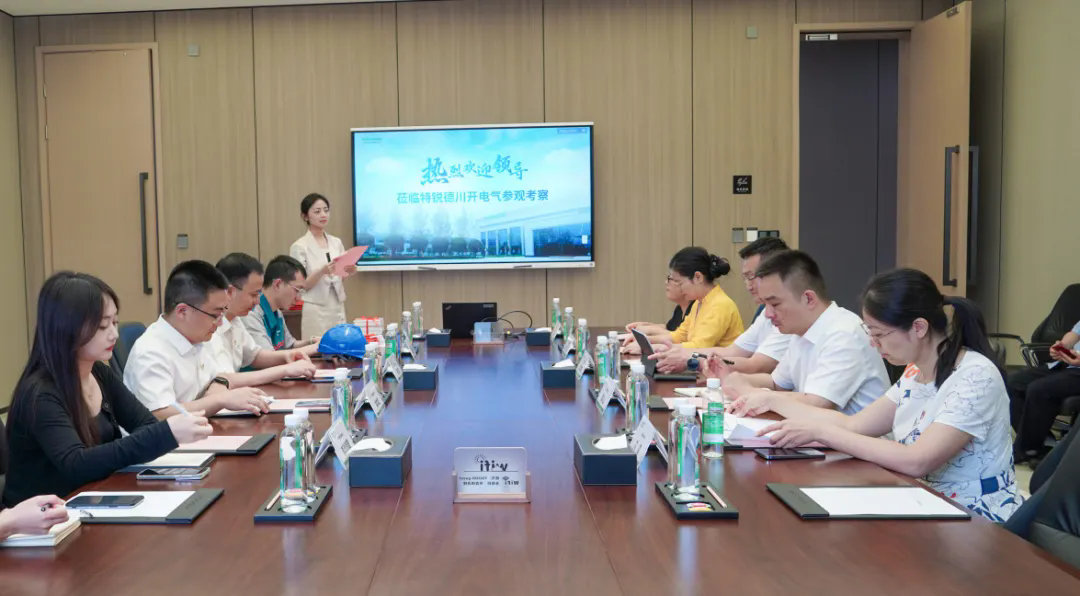 在公司领导的陪同下,来宾们步入特锐德川开电气的中国新能源生态科技馆,详细了解了特锐德川开电气基于新型电力系统建设的生态战略布局,现场听取了公司“源网荷储一体化”多站合一型变电站及全新一代智能型低压开关柜等明星产品介绍。科技馆中,特锐德川开电气对智慧微电网的建设与智能虚拟电厂生态的构想,向来宾们展现出未来能源篇章的创新发展。来宾们在5D能量魔方的观赏过程中一览未来能源城市图景,通过极具震撼的视听体验,身临其境地体验了科技感满满的“未来式”生活。随后,来宾们在党建展厅中具体了解了特锐德川开电气独具特色的企业文化与生态党建体系。