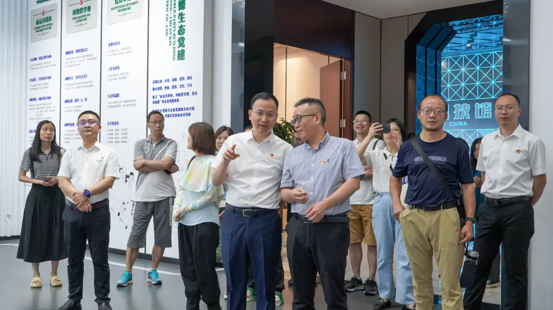 伴随讲解,来宾们步入特锐德川开电气的中国新能源生态科技馆深度体验新能源生态发展实力。参观过程中,特锐德川开电气的产业生态布局清晰可观,来宾们详细了解了特锐德川开电气全新一代智能低压开关柜与智慧能源整体解决方案,并在5D能量魔方的观赏中洞见了新能源未来世界,充分肯定了特锐德川开电气基于新型电力系统建设所取得的创新成果。随后,来宾们在特锐德川开电气的党建展厅中深入了解了公司的生态党建体系及企业文化内涵。