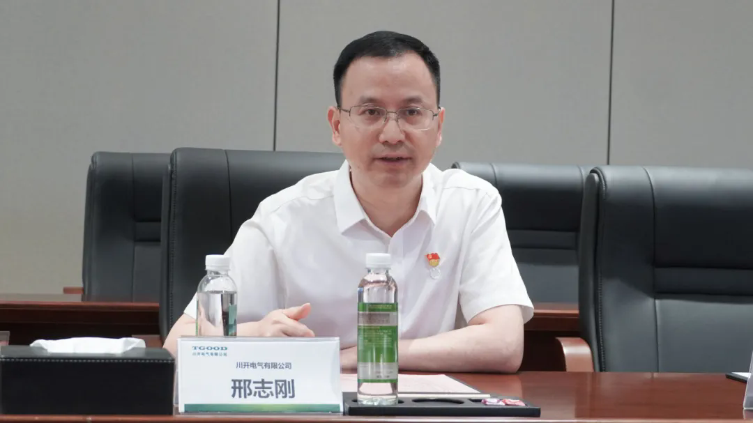 活动进入会议交流环节,来宾们通过介绍进一步加深了对特锐德川开电气基本情况的了解。特锐德川开电气党委书记、副董事长邢志刚向来宾们详细介绍了公司的业务板块与党委组织架构并致辞,表示特锐德川开电气始终坚持在人才培养、带头攻坚等方面保持公司党员的先进性,公司党委坚持把党业融合作为工作落脚点,积极打造党建阵地、开展党建联建共建工作。希望以本次主题党日活动为契机,与院校充分联动,发挥校企双方各自优势,凝聚互建共促合力,以党建进一步深化科研、就业、业务等多领域合作,实现校企无缝对接。