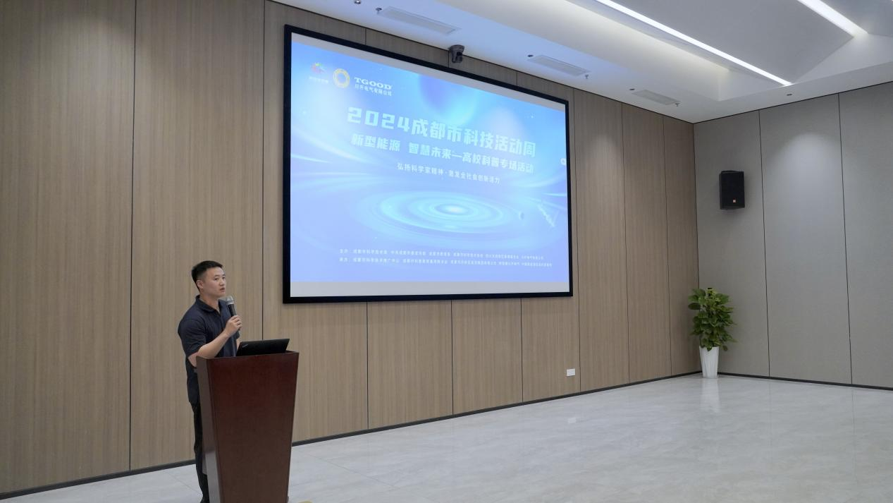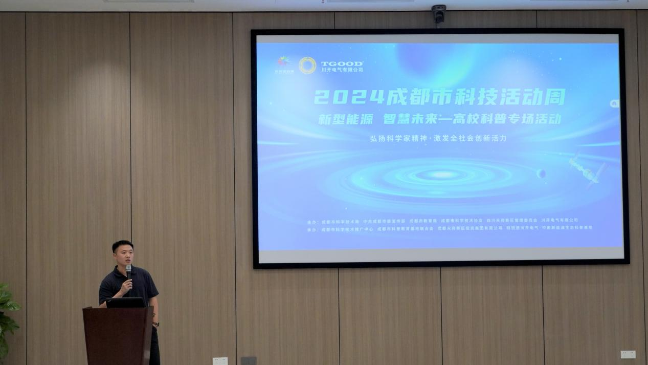 5月20日,为面向在蓉高校开展新型电力系统下的智慧能源管理科普研学活动,提升社会大众对未来能源场景的认知,由成都市科学技术局、中共成都市委宣传部、成都市教育局、成都市科学技术协会、四川天府新区管理委员会、特锐德川开电气主办,成都市科学技术推广中心、成都市科普教育基地联合会、成都天府新区投资集团有限公司、特锐德川开电气承办的以“新型能源 智慧未来”为主题的高校科普专场活动在特锐德川开电气圆满举行。来自四川大学、西南交通大学、成都理工大学、成都大学、成都信息工程大学的25名同学走进特锐德川开电气,深入了解输配电行业龙头企业硬核实力,在参观与实践中领略未来能源的发展和中国城市的变化。特锐德川开电气总经理杨杰及相关部门负责人参加了本次活动。