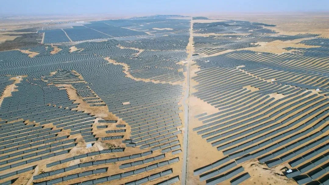 宁夏回族自治区石嘴山市平罗县高仁乡境内,一排排光伏组件整齐排列。昔日的戈壁荒滩,已在太阳的照耀下摇身一变,成为了一片蓝色的“光电海洋”。该项目总装机规模100兆瓦,投产运行后预计每年可新增“绿电”约1.85亿千瓦时,节约标煤超6万吨,减少二氧化碳排放约15万吨,实现粉尘、氮氧化物零排放。该项目对减轻环境污染、保护生态环境作用显著,在有效助力地方经济社会建设的同时,也是主动服务国家“双碳”战略的直接体现。