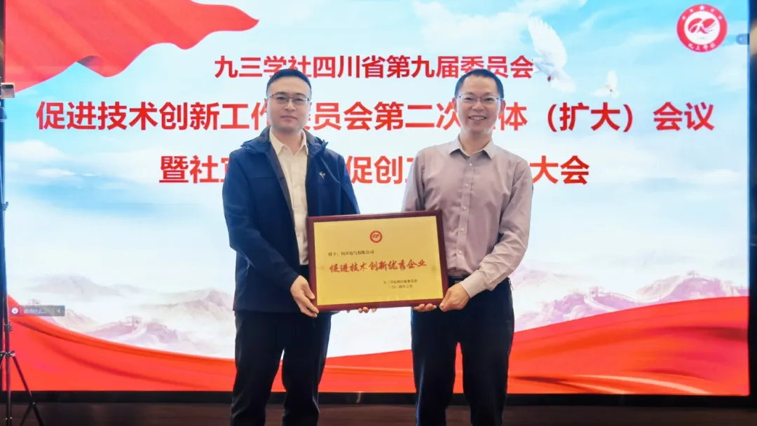会上总结了社省委促创工委2023年度工作,宣读了社宜宾市委促创工委成立文件,进行了先进表彰。特锐德川开电气被授予了“九三学社四川省委促进技术创新优秀企业”称号,特锐德川开电气副总经理张爱宝等19人被评为2023年度促进技术创新先进个人。
