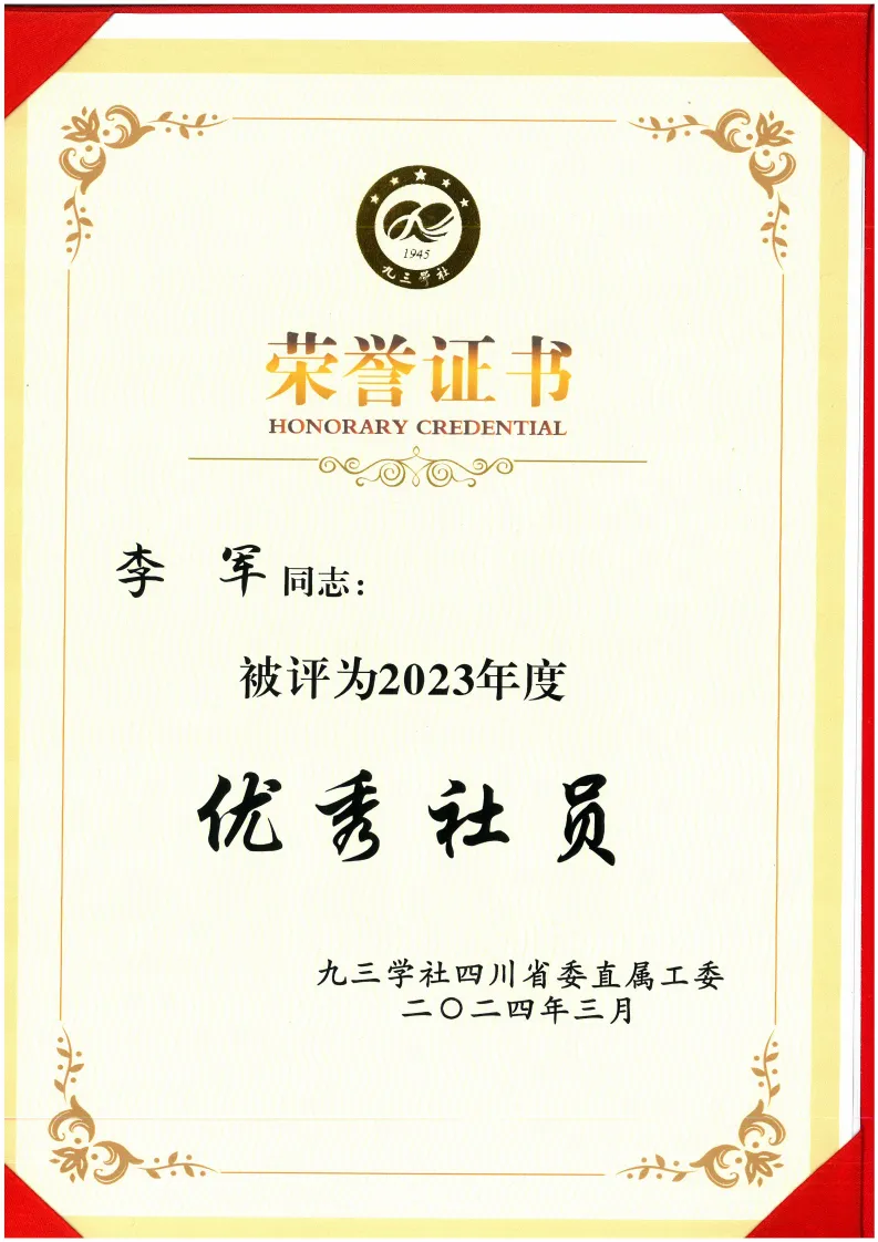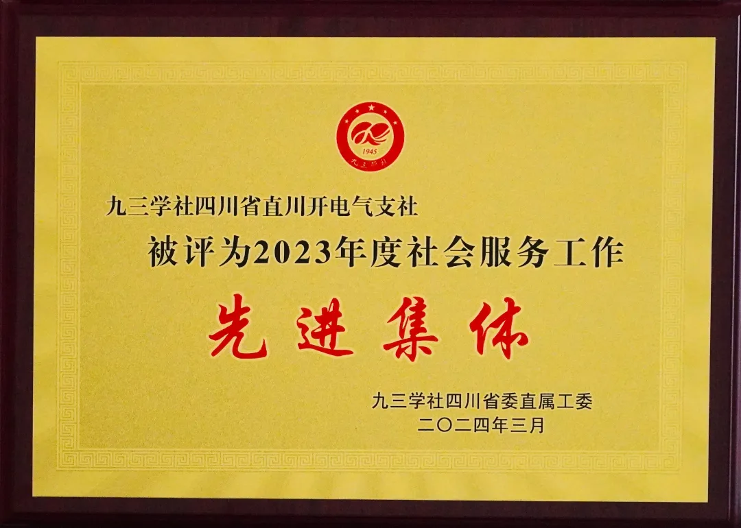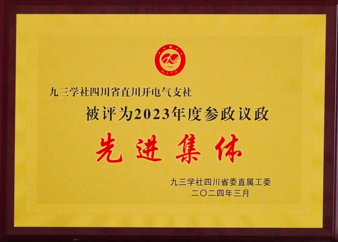同时,在九三学社四川省委直属工委八届三次全体(扩大)会议上,九三学社川开电气支社荣获2023年度参政议政先进集体与社会服务先进集体,九三学社四川省促创工委副主任、特锐德川开电气董事长李军,副总经理张爱宝,智慧能源研究院院长刘世旭等人荣获2023年度优秀社员。