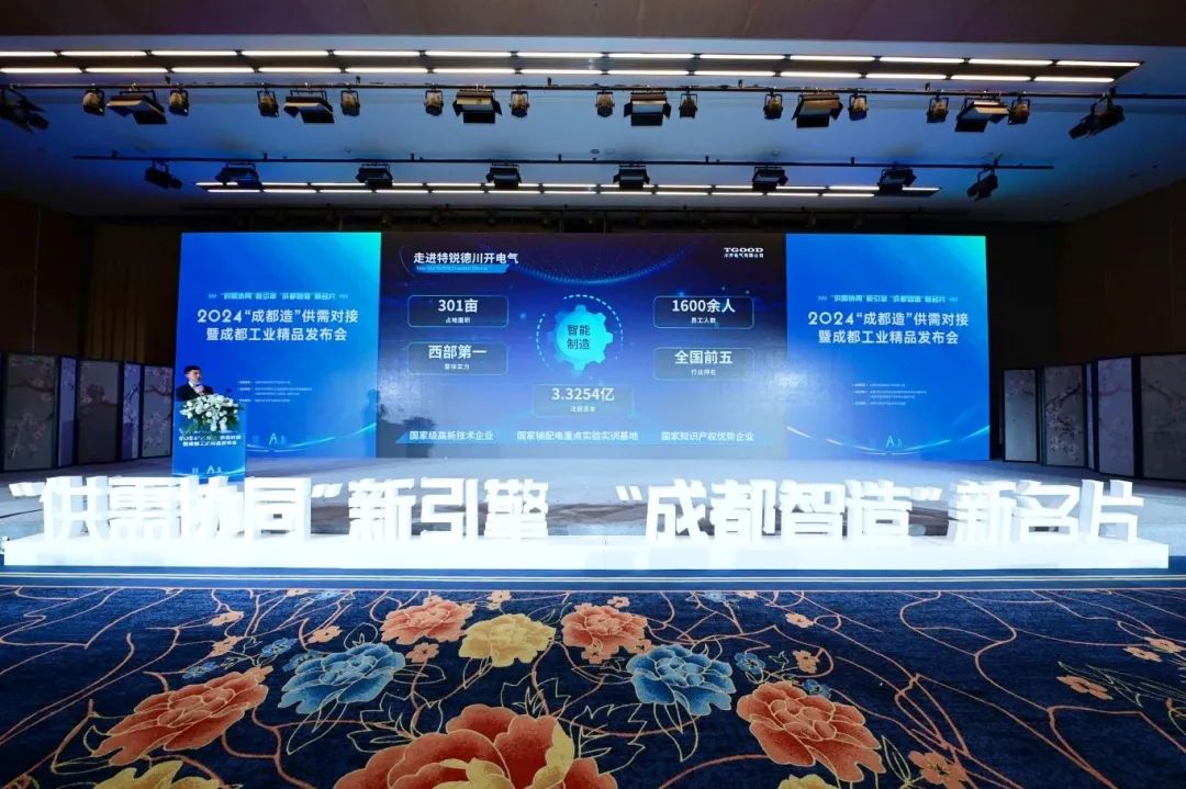 2月28日,2024“成都造”供需对接暨成都工业精品发布会成功举行。本次活动由成都市扶持名优产品领导小组指导,成都市经济和信息化局市新经济发展委员会(成都市扶持名优产品领导小组办公室)主办,成都市名优产品供需企业联盟承办。特锐德川开电气产品入选第一批“成都工业精品”名单并正式荣获授牌。