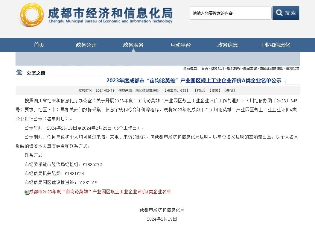 近日,成都市经济和信息化局公布了2023年度成都市“亩均论英雄”产业园区规上工业企业评价A类企业名单,特锐德川开电气凭借优秀的工业生产能力与研发创新能力成功入选。