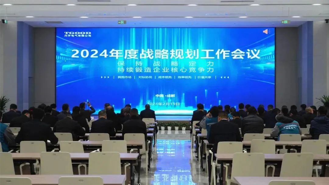公司高中层管理人员及专业代表参加了特锐德川开电气2024年度战略规划工作会议,为迎战新的一年擘画蓝图。总经理杨杰从智能制造体系转型升级、2024年战略发展主题、年度经营目标、年度战略攻坚作战蓝图、落地措施及实施计划等方面分享了特锐德川开电气2024年工作规划。