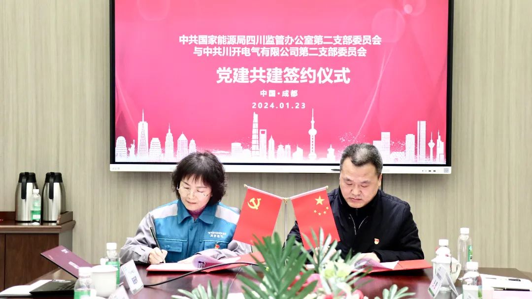 随后,与会双方针对党建与业务融合、“两新”组织党建工作等话题进行了交流。中共国家能源局四川监管办公室第二支部委员会与中共川开电气有限公司第二支部委员会签署了共建协议,中共川开电气有限公司委员会向来宾们赠送了《特锐德党建实操手册》。