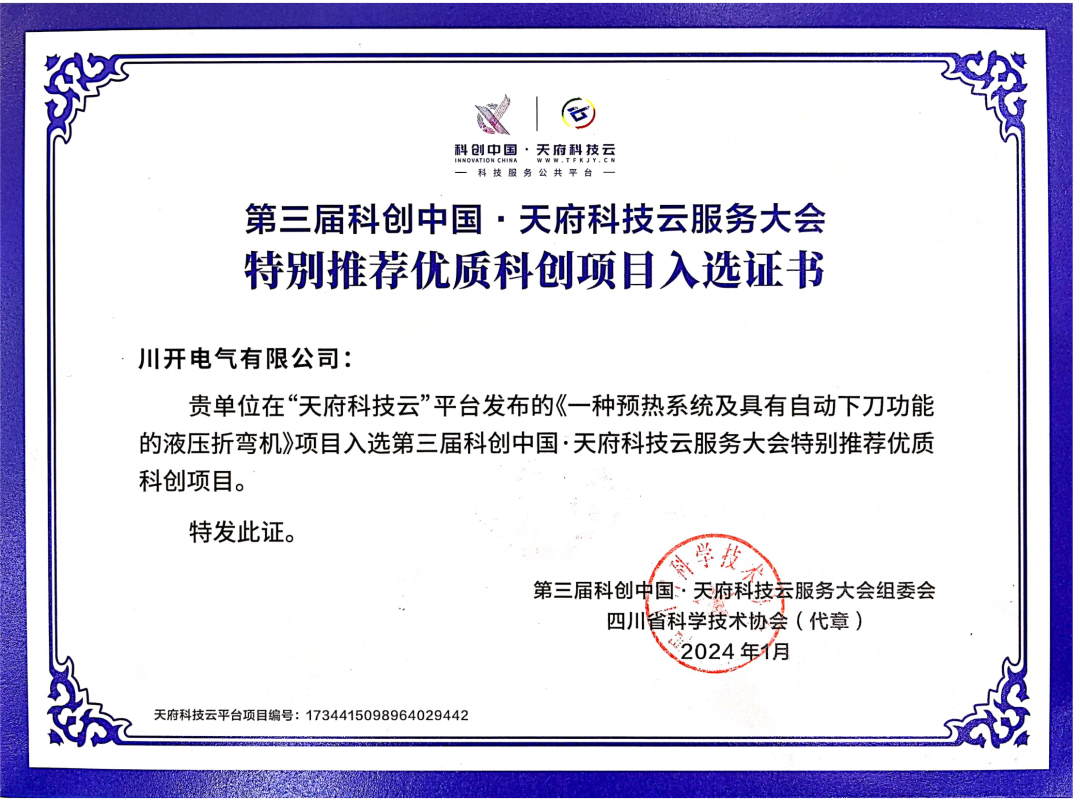 特锐德川开电气正积极承担创新者与赋能者的双重角色,凭借深厚的科创经验予力新型电力系统建设。在本届科创会上,特锐德川开电气“基于新型电力系统的智慧能源管理系统”及“一种预热系统及具有自动下刀功能的液压折弯机”两个项目光荣入选特别推荐优质科创项目,代表着特锐德川开电气所取得的技术成就得到了行业的一致认可。