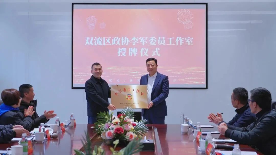 仪式上,区政协党组书记、主席唐劲松为“李军委员工作室”授牌。双流区政协委员、特锐德川开电气董事长李军进行了发言,对各位领导、委员和企业家朋友的关心与支持表示了感谢,并深入分析了双流区政协委员工作室成立后将要履行的职责。他强调,将以政协委员工作室为平台,加强与政府部门的沟通联系,积极反映社情民意,充分发挥政协委员的主体作用,将委员工作室建设成为推进政协工作向基层拓展延伸的“前哨阵地”,并大力推进政协委员工作室电力产业链特色服务。