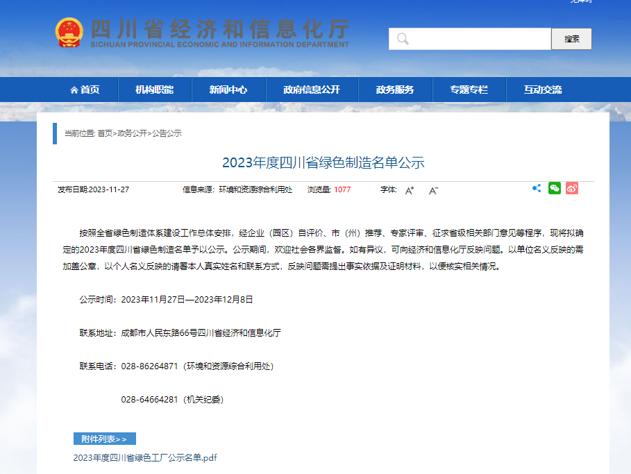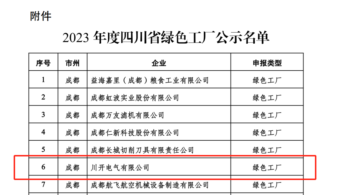 近日,四川省经济和信息化厅公示了2023年度四川省绿色制造名单,其中,特锐德川开电气正式获评“2023 年度四川省绿色工厂”。