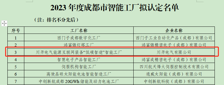 近日,特锐德川开电气能源互联网装备“低碳智造”智能工厂入选2023年度成都市智能工厂。