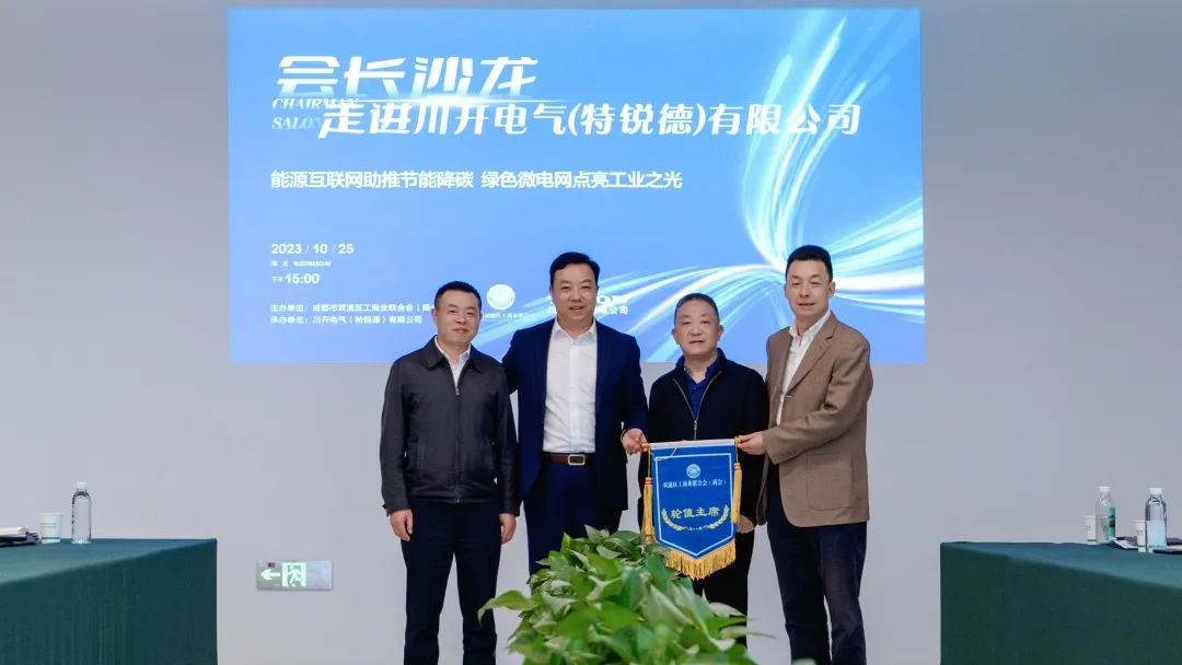 10月25日,为深入贯彻习近平总书记来川视察重要指示精神,全面落实中共中央国务院关于促进民营经济发展壮大的意见等系列文件精神,进一步加强民营企业交流学习与合作,成都市双流区工商联“会长沙龙·走进特锐德川开电气”活动顺利举行。双流区政协副主席、区工商联主席刘昶,区委统战部副部长、区工商联党组书记付勇,区新科局四级调研员冉维熙,区税务局党委委员总经济师温元长出席活动,特锐德川开电气董事长李军参加活动。
