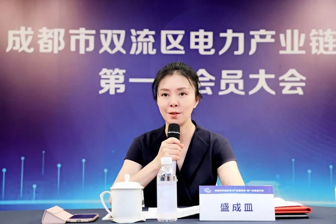 成都市工商联党组成员、副主席盛成皿代表成都市工商联(总商会),向双流区电力产业链商会的正式成立表示了热烈祝贺,她表示,成都市双流区电力产业链商会作为全市首个区(市)县产业链商会,充分展现了双流区工商联和双流民营企业开拓进取、务实作为的精神风貌。同时她进一步希望商会能充分发挥好党委政府与民营经济人士的桥梁纽带作用,推动全面构建亲清政商关系,为产业发展建言、为企业发展代言,推动企业发展环境优化,助力企业高质量发展。
