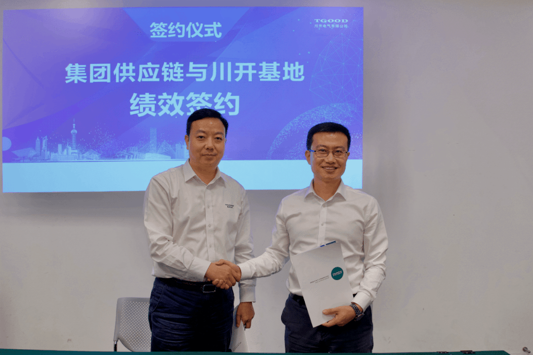 4月20日,特锐德川开电气召开了大价值创造中心与集团供应链2023年度绩效签约会,特锐德川开电气董事长李军、总经理周君、集团副总裁李广智等领导出席会议。