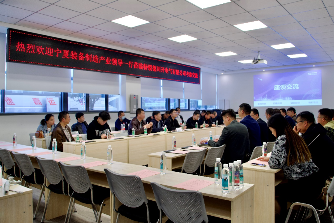 3月31日,宁夏装备制造产业高质量发展培训班莅临特锐德川开电气考察交流,特锐德川开电气副董事长袁会云、总经理周君热情接待来宾一行。