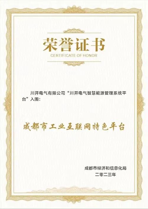 3月24日,成都市经济和信息化局举办了成都市企业上云工作推进会。会上,为特锐德川开电气智慧能源管理系统平台颁发了成都市工业互联网特色平台荣誉证书。
