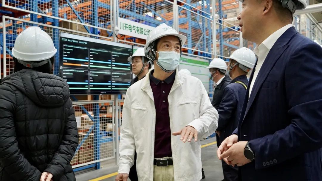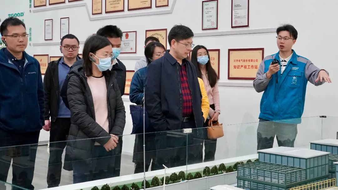 来宾一行参观了特锐德川开电气智慧工厂,详细了解了川开电气发展状况、创新方向和工业旅游示范基地建设等有关情况,其中就公司重点产品预制舱模块化变电站、智慧能源管理系统进行了深度了解。