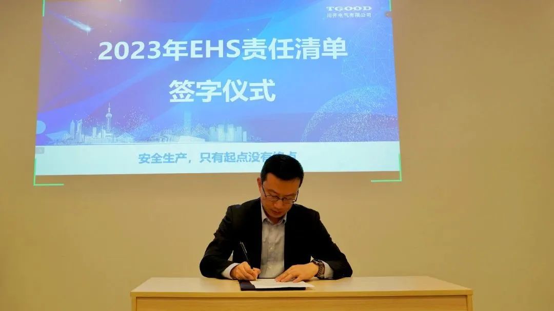 保证安全生产一直是公司经营目标的重中之重,2022年特锐德川开电气经历了两次疫情闭环驻厂、一次高温限电让电于民,在全体战友的努力拼搏下,公司所有安全经营指标均超额完成,为表彰过去一年各位战友的辛勤付出,同时为全面落实2023年环境健康安全生产控制目标和工作目标,减少和杜绝各类生产环境健康安全事故的发生,3月14日,特锐德川开电气举行了2023年度EHS管理目标分解及责任清单签订会。特锐德川开电气总经理周君,总工程师张坚及各部门负责人出席会议。