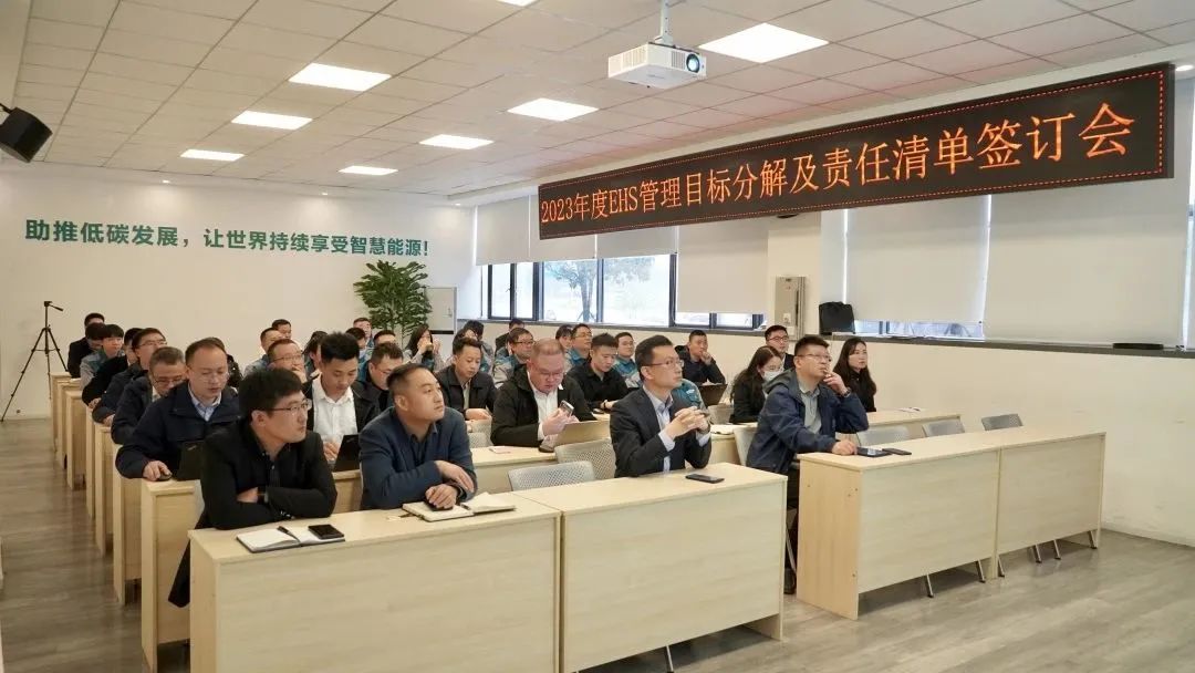 接着,陈子豪就2023年EHS管理目标及分解情况作具体汇报,罗列出公司EHS管理机构各级职责的清单,并汇报了各部门年度EHS管理目标分解和EHS管理奖励与考核等重要事项。