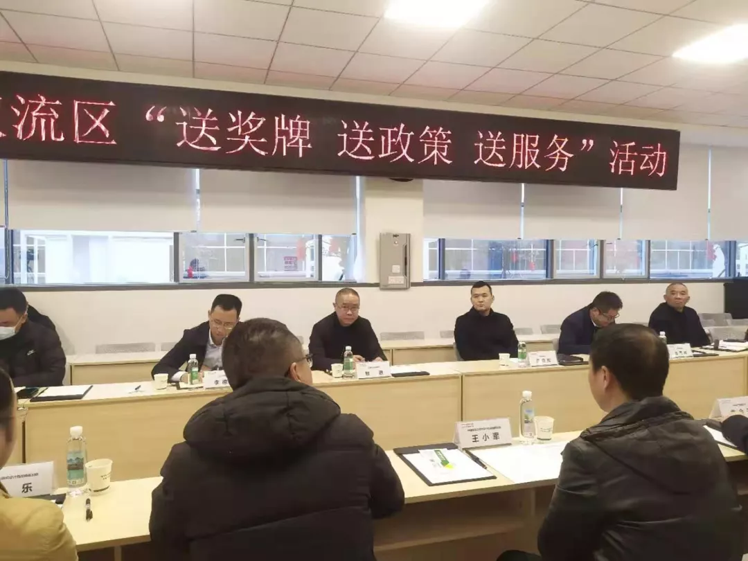 1月27日,双流区政府在川开电气产业园组织园区企业、科研院所召开“送奖牌、送政策、送服务”企业家座谈会,双流区政协主席唐劲松、新科局局长徐雪峰等政府代表,川开电气副董事长袁会云等企业代表参会。