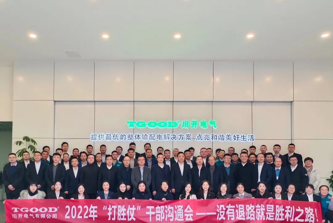 1月4日,川开电气举行了2022年“打胜仗”干部沟通会,公司董事长李军等公司领导及中层管理人员参加会议。