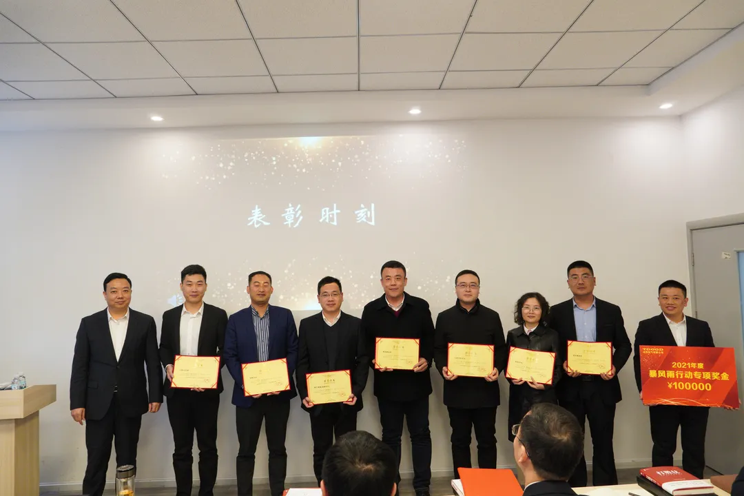 邢志刚副董事长宣读了2021年度暴风雨行动表彰文件,表彰了在暴风雨行动中积极进取、攻坚克难的优秀团队及个人,希望他们持续发扬特别能吃苦、特别能战斗、特别能奉献的精神,再接再厉,再创佳绩。随后为获奖团队及战友颁发了荣誉证书。