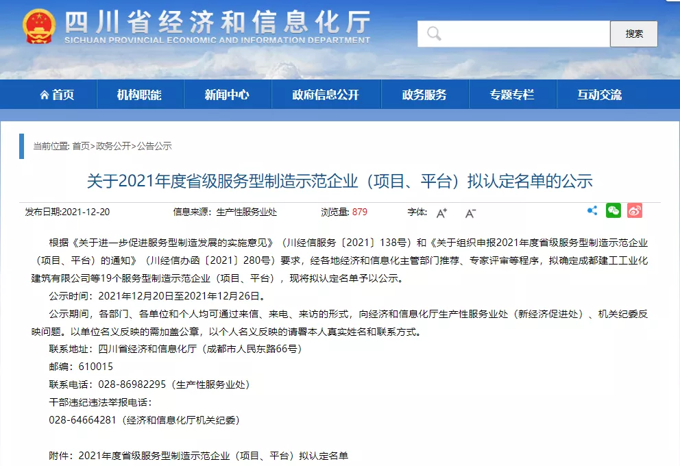 服务型制造是制造与服务融合发展的新型制造模式和产业形态,是先进制造业和现代服务业深度融合的重要方向,是制造业转型升级、增强核心竞争力、实现高质量发展的重要途径。此次评选是根据《关于进一步促进服务型制造发展的实施意见》(川经信服务〔2021〕138号)和《关于组织申报2021年度省级服务型制造示范企业(项目、平台)的通知》(川经信办函〔2021〕280号)的要求,再经各地经济和信息化主管部门推荐、专家评审等一系列程序,最终拟定入选名单。