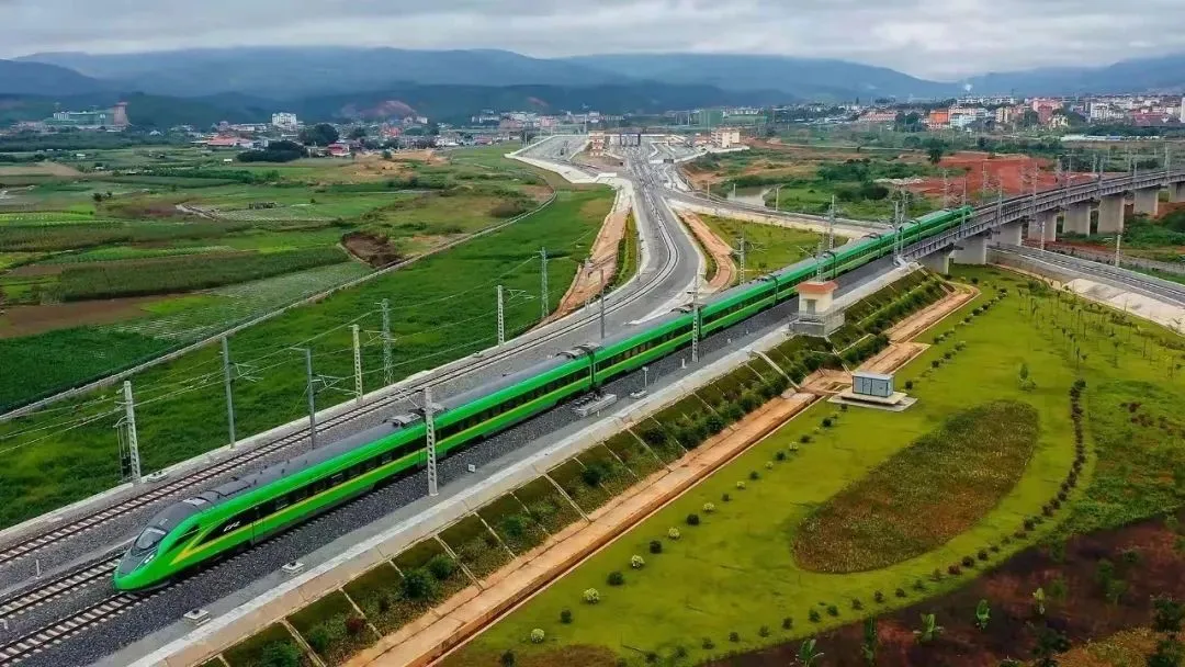 中老铁路北起中国昆明,南连老挝万象,全长1035公里,桥梁301座、隧道167座,是共建“一带一路”倡议提出后,首条以中方为主投资建设、全线采用中国技术标准、使用中国设备并与中国铁路网直接连通的国际铁路。项目向北衔接中国铁路网,向南可与泰国、马来西亚、新加坡实现铁路连通,是一条中国制造的“匠心路”、文化交流的“友谊路”、经济建设“黄金路”。中老铁路建成通车,标志着昆明到万象从此山不再高、路不再长,中老命运共同体更加牢不可破。