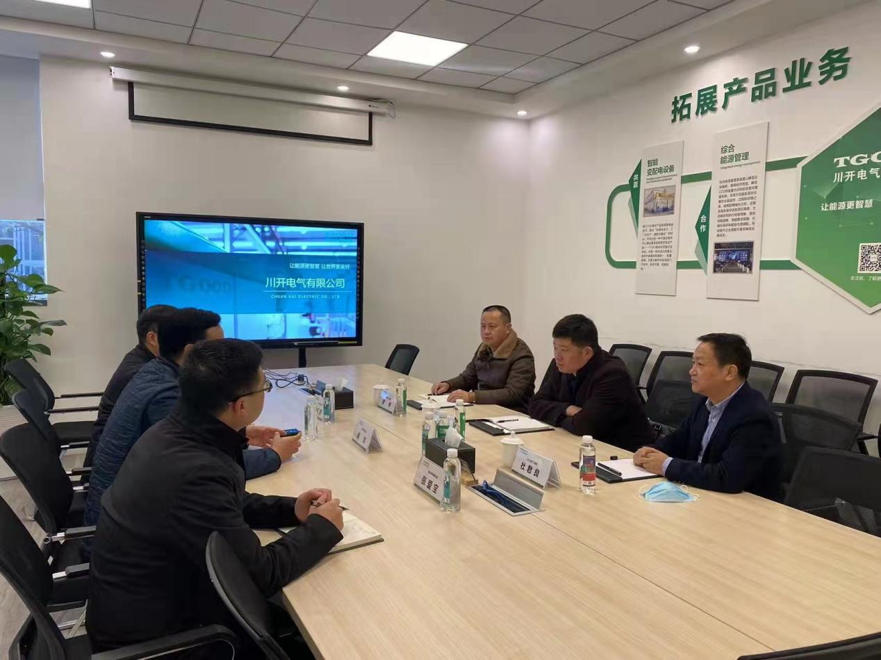 11月24日,四川省工商联副主席孙宁、秘书长杜君良莅临川开电气考察调研,川开电气董事长李军、总经理邢志刚陪同调研。