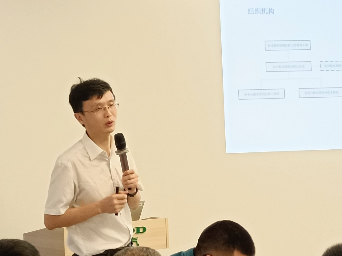 在姬总讲话之后,由中广核工程有限公司毕涛老师正式开始讲课,毕涛老师主要从根本原因的定义、常用的统计分析工具、事件调查的流程、常用的根本原因分析方法等几个方面进行了课程的讲解。