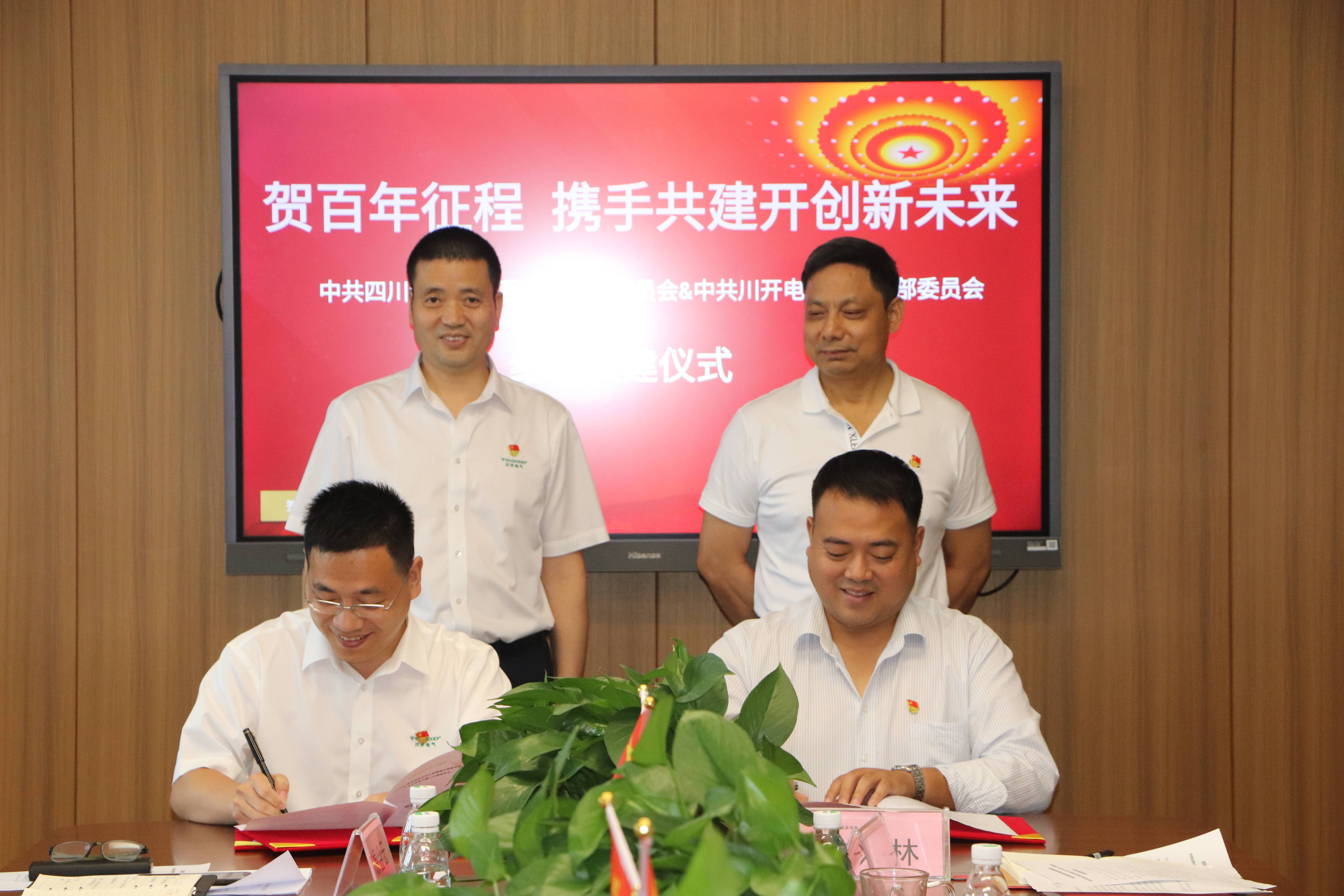 2021年7月9日上午,中共四川送变电工程管理支部委员会与中共川开电气有限公司第一支部委员会结对共建签约仪式在川送公司集团大楼圆满举行。川开电气有限公司党委书记、副董事长袁会云,第一党支部书记、副总经理姬广辉以及川送党委副书记、副董事长、总经理向兴林,党委委员、工程管理党支部书记、总工程师许卫等同志出席会议。