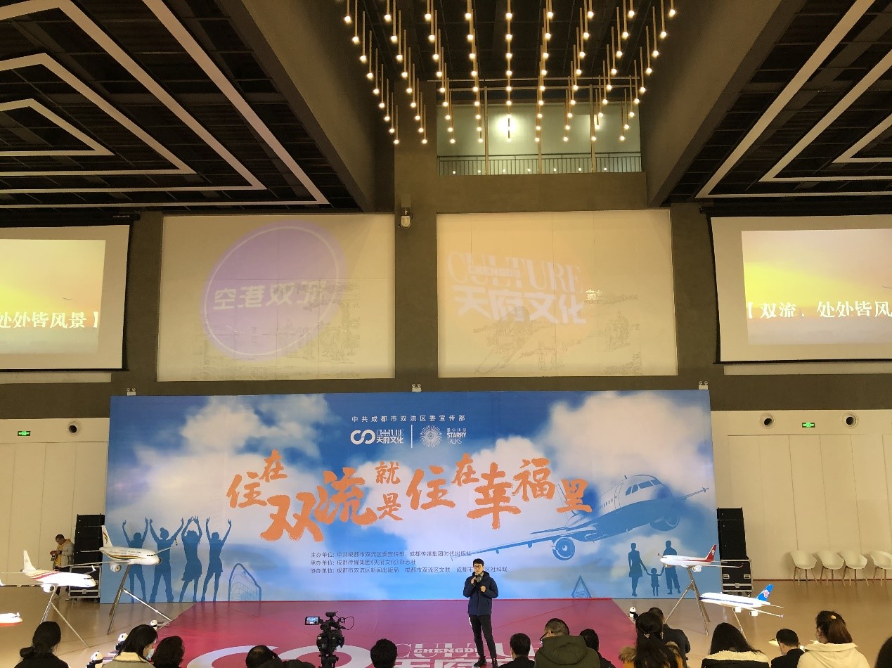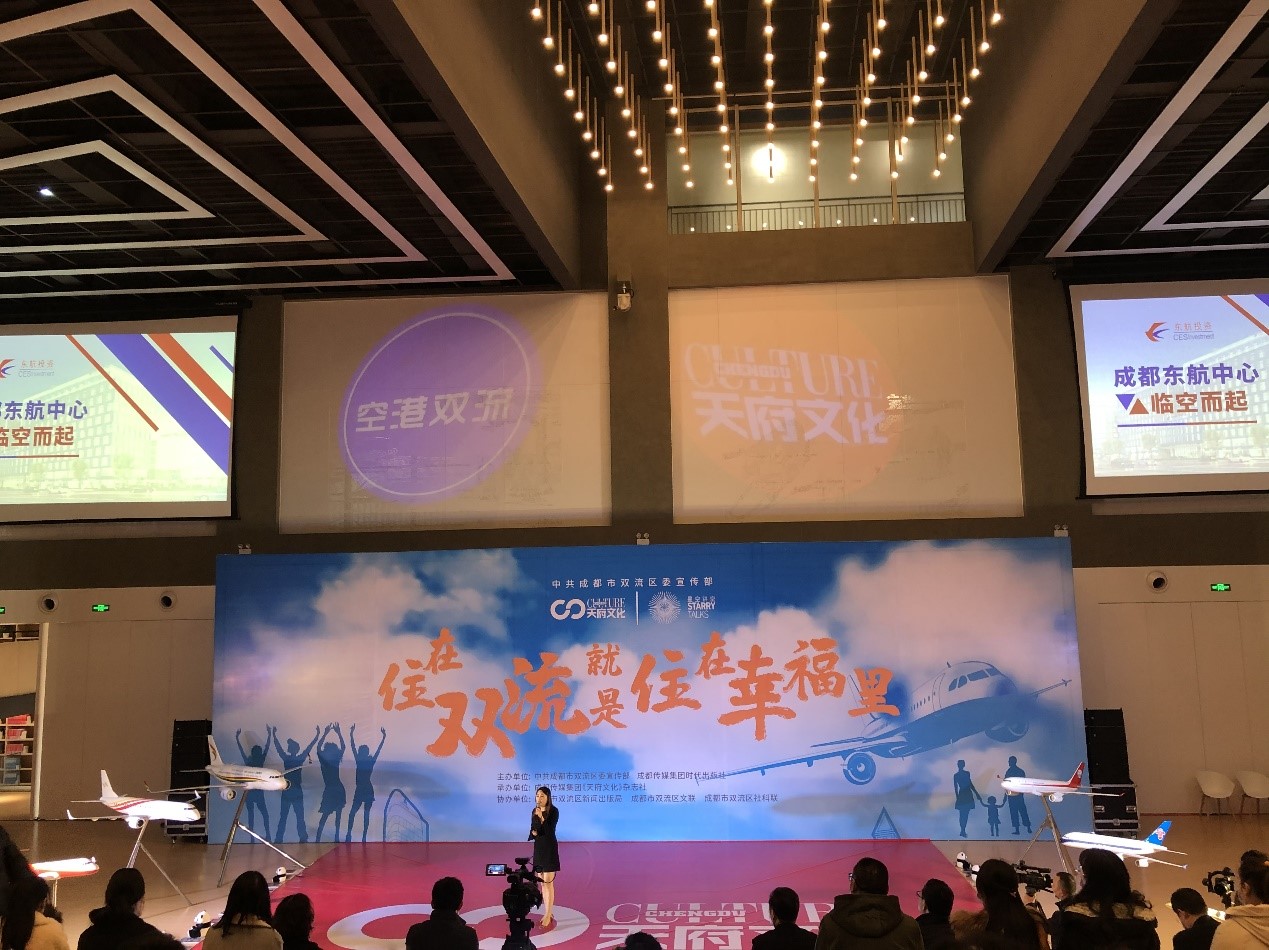 她站在星空讲堂,以航空企业的角度讲述工作在双流的幸福。成都·东航中心,位于双流临空经济示范区,是一座集高端商务和休闲购物为一体的大型商办综合体。双流区出台了多项扶持政策,并优化至每一处小细节,从设置接驳车到统一现场办证收集资料,再到帮助企业协调各种问题,在潘星看来,双流是机遇之城、魅力之城。