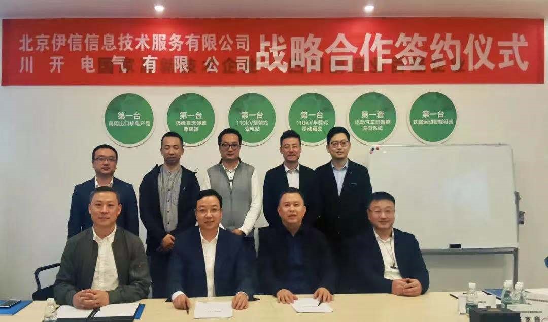 2020年11月18日,北京伊信信息技术服务有限公司(以下简称:伊信数投)与川开电气有限公司(以下简称:川开电气)在成都川开电气工业园区正式签署战略合作协议,伊信数投董事长李凯与川开电气董事长李军代表各自单位在战略合作协议上签字。