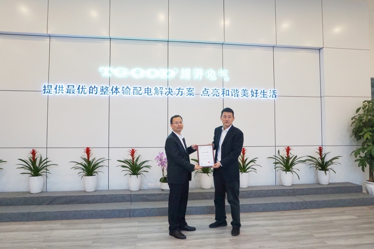 2020年10月9日双流区市场监督管理局党组书记、局长尹宏波一行代表双流区政府向川开电气授牌。