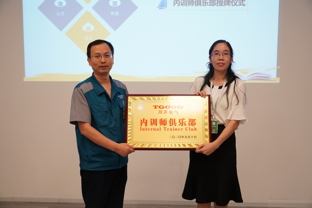 接下来,激动人心、盼望已久的内训师俱乐部即将启航。由公司代表总经理邢志刚,向内训师俱乐部代表人力资源部经理裴晓霜,授予川开电气内训师俱乐部成立牌匾。这一刻,宣告川开电气内训师俱乐部正式成立啦!