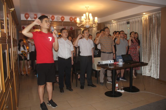 为赢得公司三次创业,在得力干将、业务拓展部经理黄恺的领誓下,全体奋斗者进行了郑重宣誓: