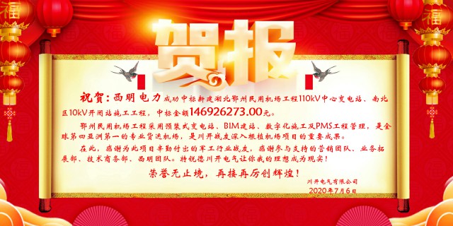 近日,川开电气有限公司的全资子公司特锐德西明电力有限公司(以下简称“西明电力”)于近日喜提湖北国际物流机场有限公司签发的《中标通知书》,西明电力中标“新建湖北鄂州民用机场工程110kV/10kV中心变电站、南北区10kV开闭站工程施工”项目,中标金额约1.47亿元人民币。