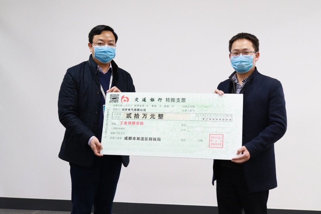 2020年2月20日,双流区区委常委、区总工会主席韩超、双流区新科局副局长王敬兰及西开区相关部门领导一行来到川开电气开展“送奖牌 . 送服务”。川开电气有限公司董事长李军、副董事长袁会云、总经理邢志刚及副总经理杨莉、杨杰、王长东等参会。